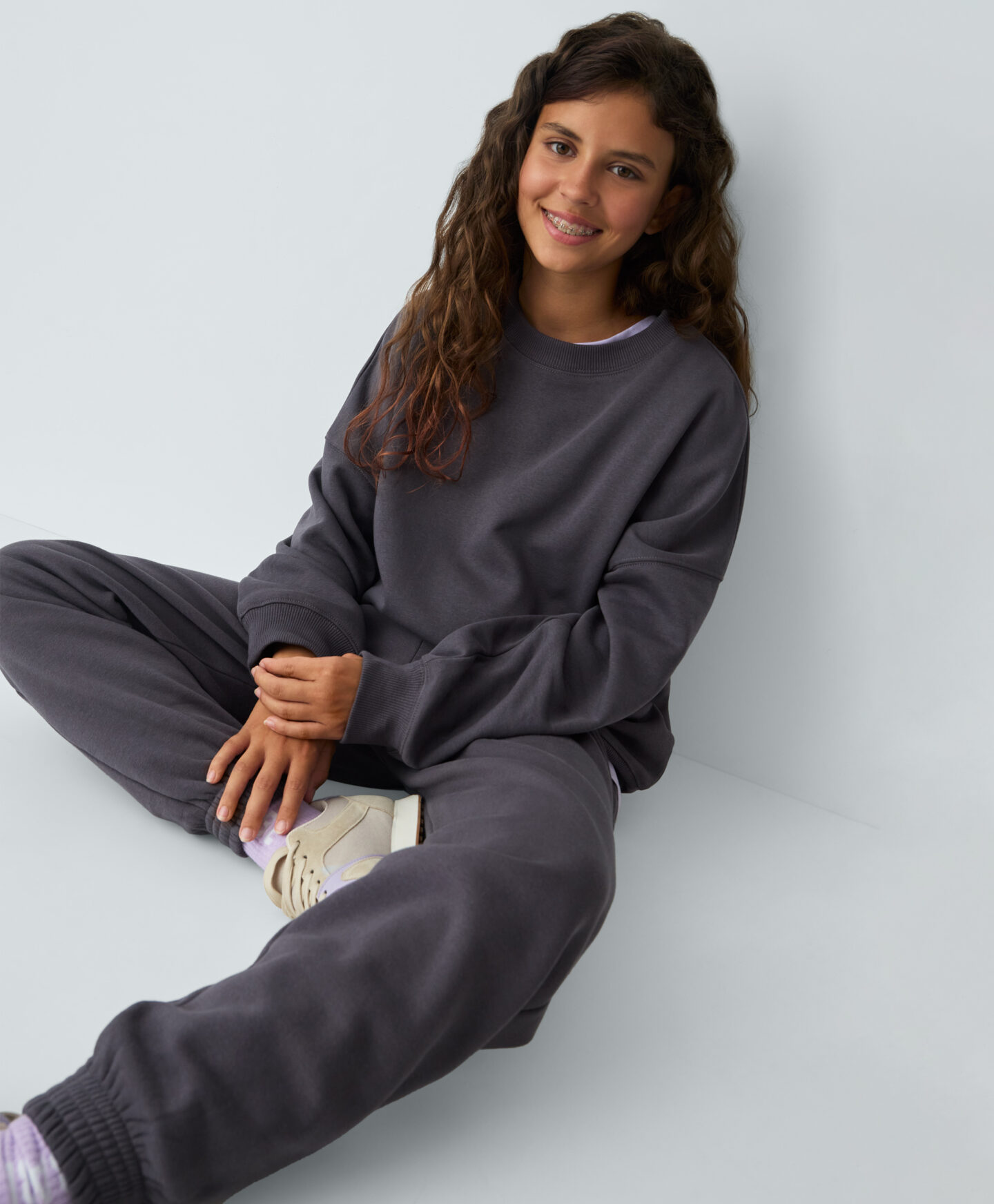 Vaikiškos sportinės kelnės iš medvilnės, madingo platesnio modelio, šį sezoną yra privalomos. Jos yra minkštos, patogios ir nevaržo judesių. Puikiai tinka mokyklai, sporto užsiėmimams ar savaitgalio veikloms lauke. Galima įsigyti tos pačios spalvos džemperį.