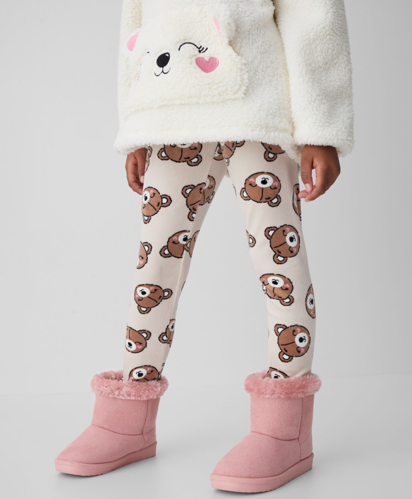 Vaikiškas veliūro tamprės su mielu meškiukų raštu pamėgs kiekvienas vaikas. Jos šiltos ir minkštos liesti, o elastinga medžiaga užtikrina patogų dėvėjimą. Tamprės tinka tiek namams, tiek pasivaikščiojimams lauke ar darželyje. Jos puikiai dera prie džemperio, megztinio ar marškinių ilgomis rankovėmis.