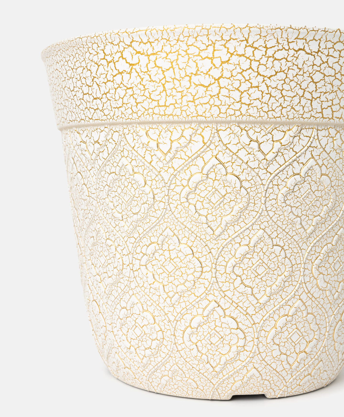 Vazonas su raštu, skersmuo 28 cm, patraukia dėmesį ornamentuotu paviršiumi. Švelnios spalvos puikiai įsilies į svetainės, miegamojo ar vaikų kambario kompoziciją, pabrėždamos gėlių grožį. Vidutinio dydžio vazonas puikiai tinka populiariausiems kambario augalams, tokiems kaip fikusas, monstera ar dracena. Pagamintas iš tvirtos medžiagos, vazonas yra lengvas ir lengvai prižiūrimas.