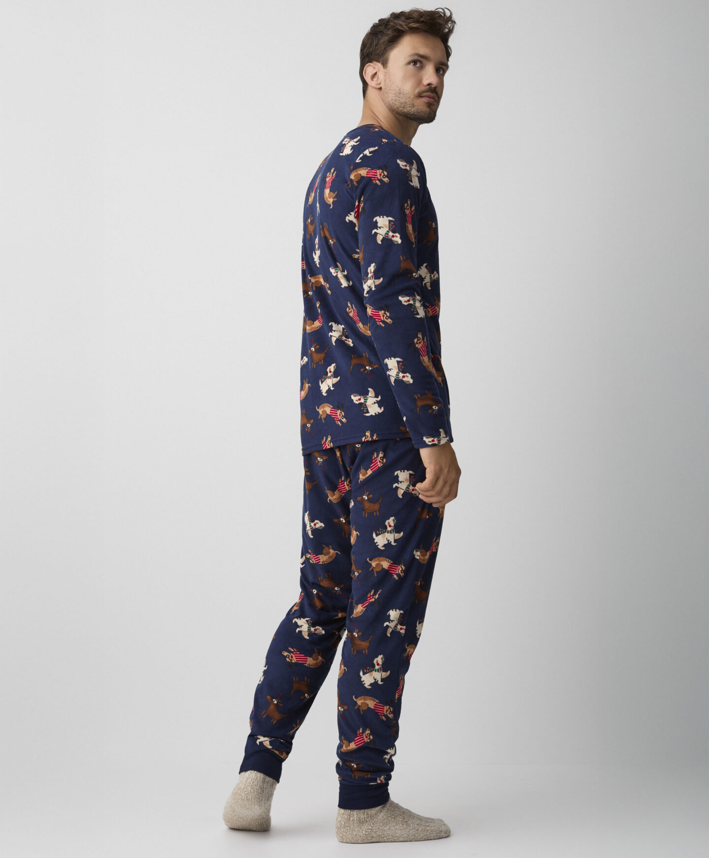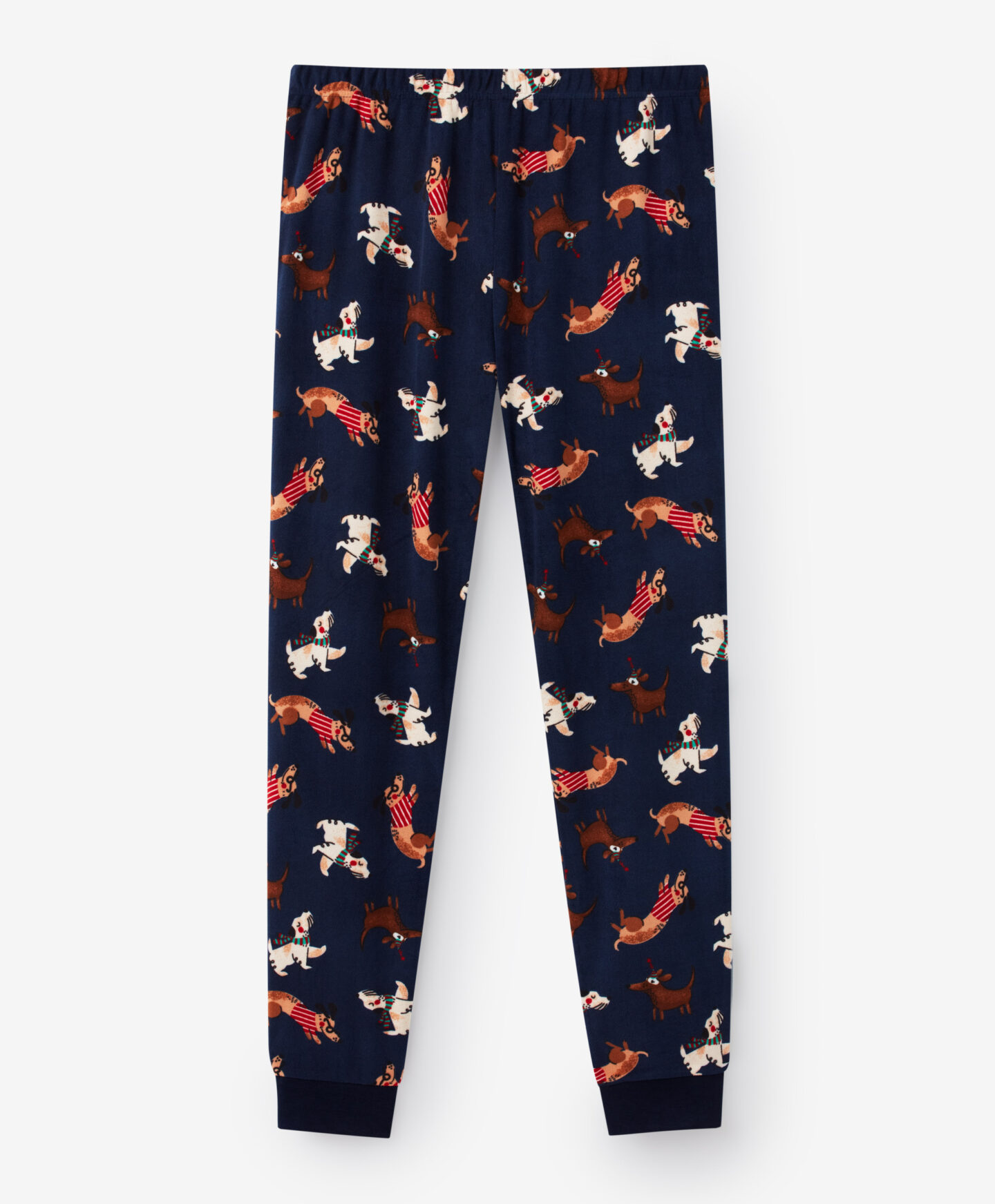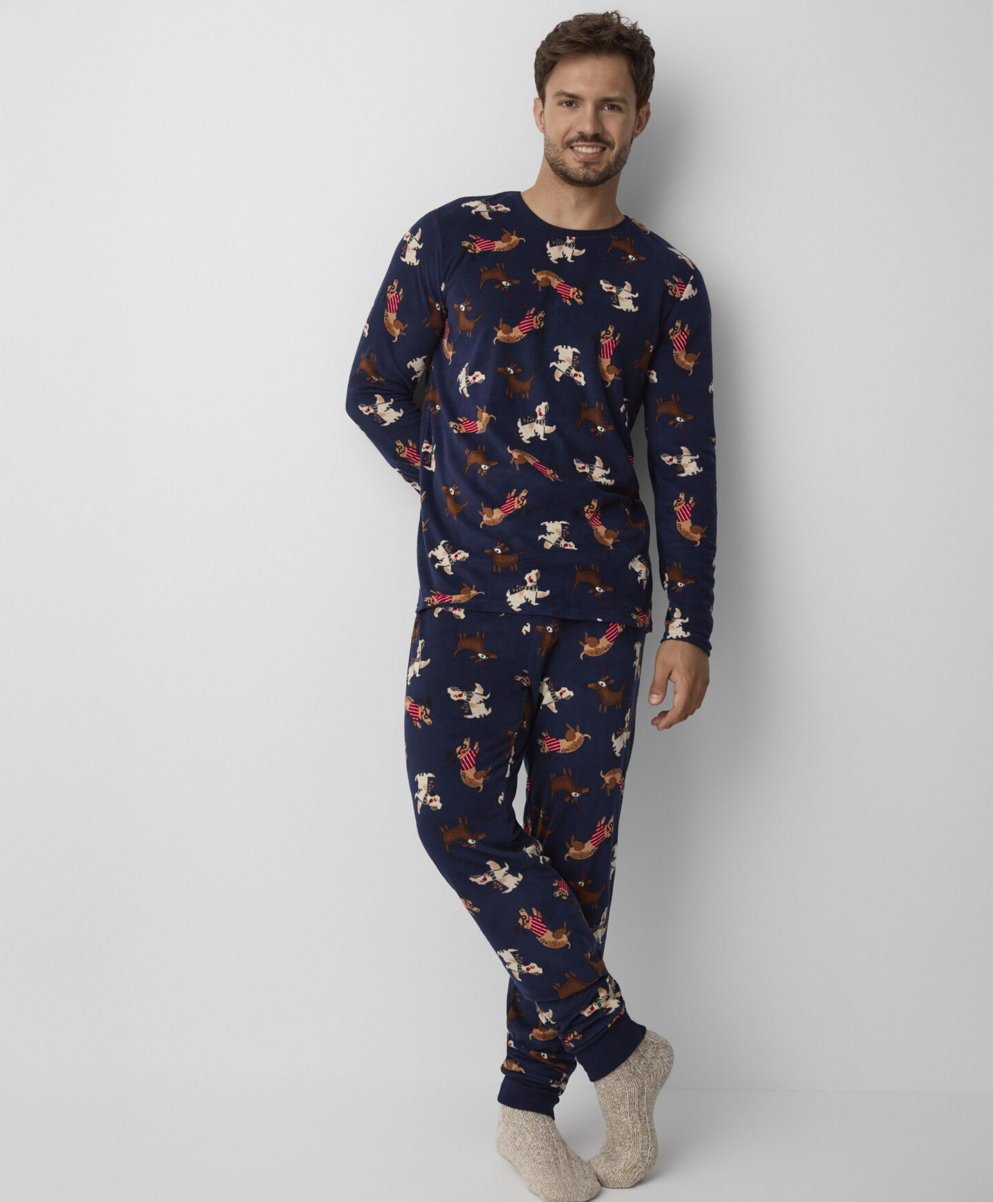 Veliūrinė pižama su šuniukais puikiai tinka vėsesnėms dienoms. Pasiūta iš minkšto ir malonaus liesti veliūro, ji suteikia šilumos, komforto, nevaržo judesių. Žaismingi raštai su šuniukų motyvais privers norėti ją dėvėti prieš miegą. Idealiai tinka šių keturkojų draugų mylėtojams.