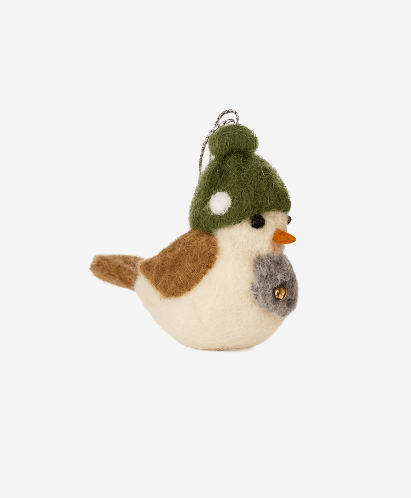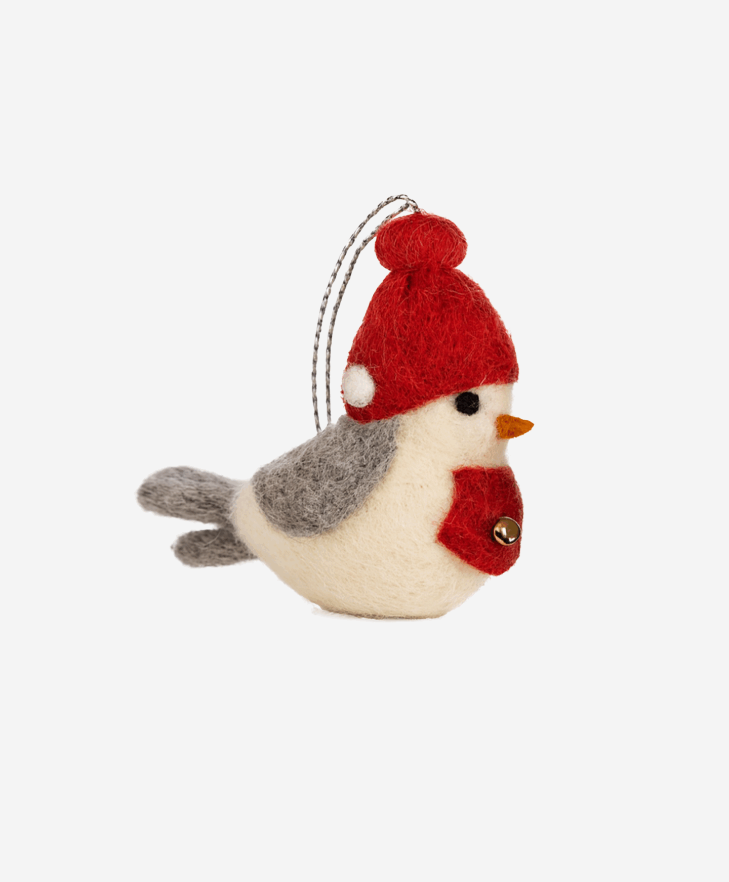 Veltiniai paukštukai, 2 vnt., – tai žavus duetas, kuris į namus įneš šventinės atmosferos. Kiekvienas paukštelis turi megztą kepurę, o veltinio detalės suteikia jiems unikalų charakterį. Šios dekoracijos yra puiki puošmena Kalėdų eglutei.