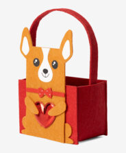 Veltinio krepšelis su šuniuko motyvais – tai puikus būdas sukelti šypseną ir pabrėžti dovanos unikalumą. Tai gali tapti žavinga pakuote Valentino dovanai, pavyzdžiui, šokoladiniams saldainiams, kvapiajai žvakei, papuošalams ar kitoms romantiškoms smulkmenoms. Galima rinktis iš trijų dizaino variantų.