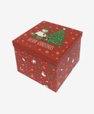 Žalia popierinė dėžutė papuošta dekoratyviniais kalėdiniais motyvais. Ji praktiška ir estetiška, todėl puikiai tinka supakuoti staigmenas artimiesiems. Tokioje dėžutėje esančios dovanos atrodo išskirtinai ir džiugina iš pirmo žvilgsnio.