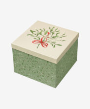 Žalia popierinė dėžutė papuošta dekoratyviniais kalėdiniais motyvais. Ji praktiška ir estetiška, todėl puikiai tinka supakuoti staigmenas artimiesiems. Tokioje dėžutėje esančios dovanos atrodo išskirtinai ir džiugina iš pirmo žvilgsnio.