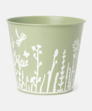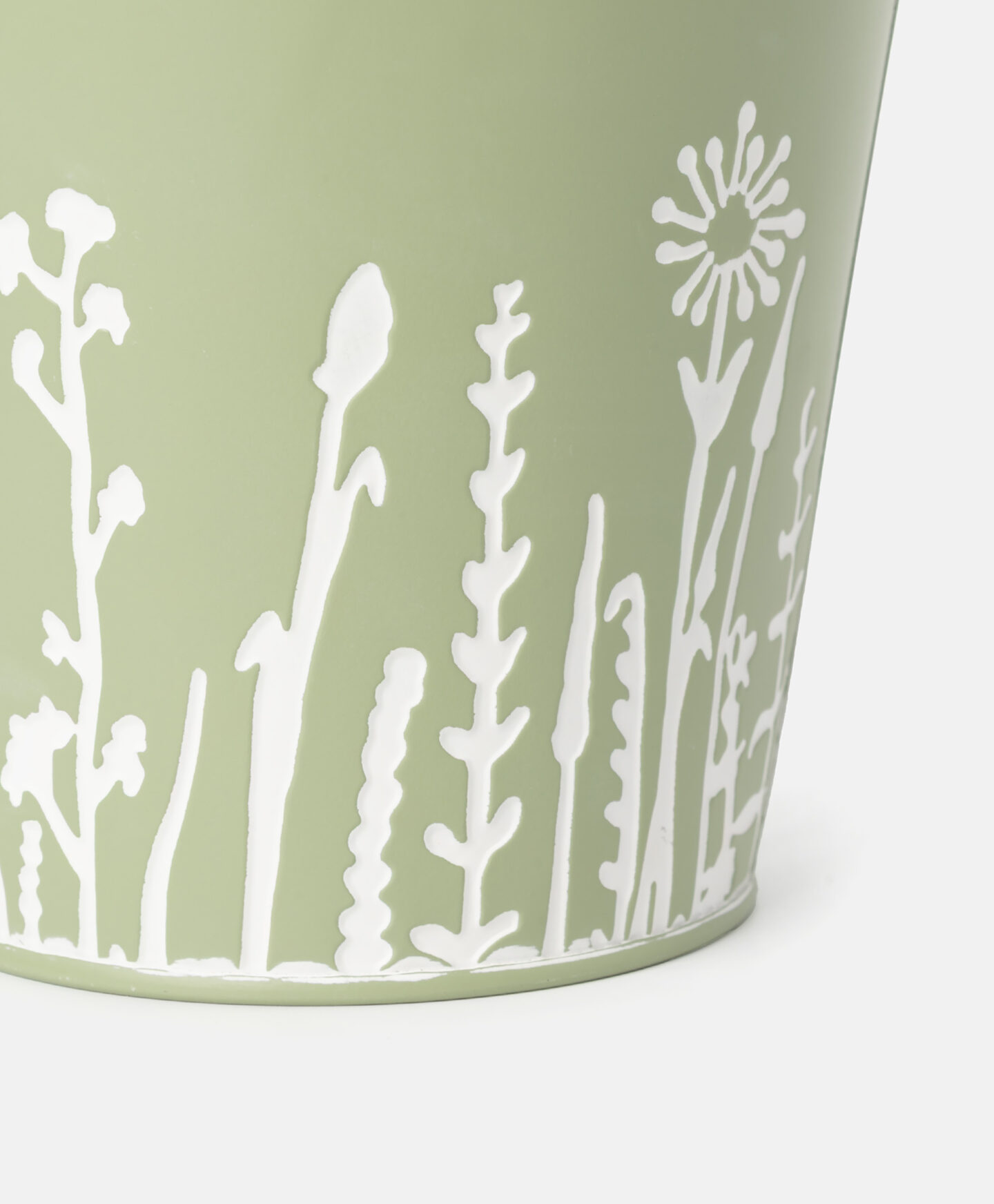 Žalias metalinis vazonas su raštu yra lengvas, tvirtas ir atsparus oro sąlygoms. Pavasariški raštai ant sienelių įneš gaivos jūsų terasai ar balkonui. Puikiai tinka mažiems augalams, daržovėms ar gėlėms sodinti. Vazoną lengva valyti ir prižiūrėti – siekdami išlaikyti jo blizgesį ir gražią išvaizdą, tiesiog nuvalykite drėgna šluoste. Galima rinktis iš keleto variantų.