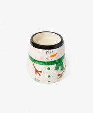Žvakė sniego senio formos keraminiame indelyje – tai kalėdinis akcentas, praskaidrinantis interjerą šilta šviesa. Keraminis indelis džiugina savo spalvomis, todėl žvakė tampa ir puošmena, ir malonios šviesos šaltiniu. Puikiai tinka magiškai atmosferai sukurti gruodžio vakarais.